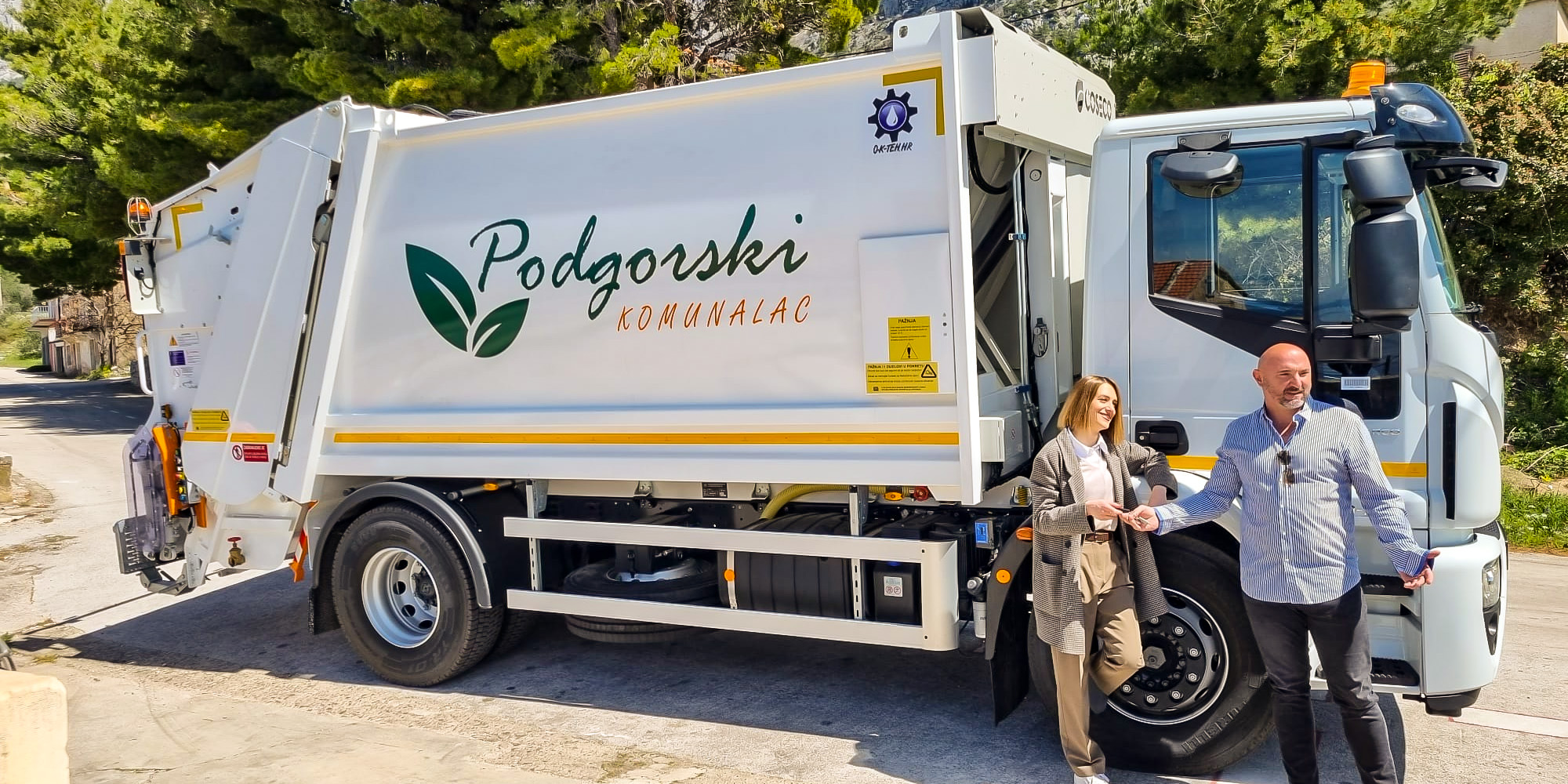 Tvrtki PODGORSKI KOMUNALAC isporučili smo komunalno vozilo za sakupljanje otpada s nadogradnjom talijanskog proizvođača COSECO tip K5. Nadogradnja je kapaciteta 16 m³ s vodonepropusnim tovarnim prostorom (spremnikom), sustavom sabijanja putem potisne ploče i omjerom sabijanja miješanog komunalnog otpada 1:5. Ove nadogradnje opremljene su podizačima za pražnjenje posuda na dva kotača volumena 80/120/240/360 l, kao i podizačima za posude na četiri kotača kapaciteta do 1100 l s ravnim poklopcem. Nadogradnja je montirana na Iveco podvozje nosivosti 18 t.
